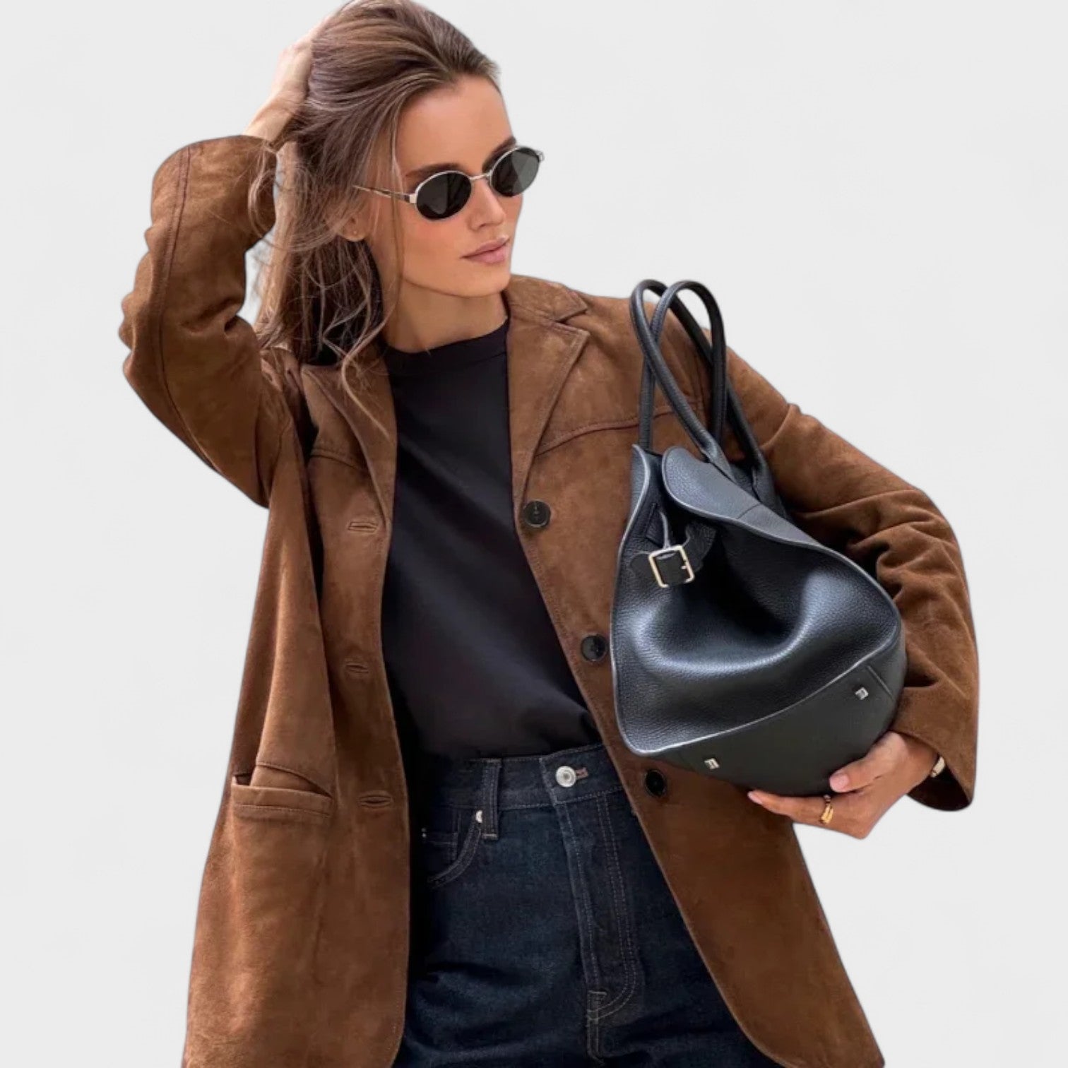 El blazer Lola combina el encanto clásico del corte sastre con la vibra desenfadada del ante. En un tono marrón terroso super versátil, aporta personalidad y elegancia a cualquier conjunto — desde unos jeans básicos hasta un pantalón de sastre. Estructurado en la medida justa, es esa prenda clave que eleva el visual sin esfuerzo.