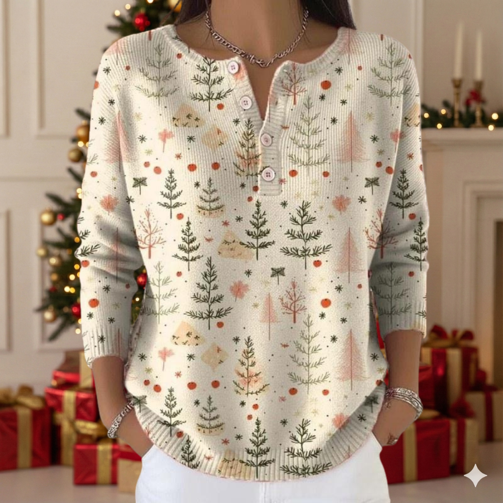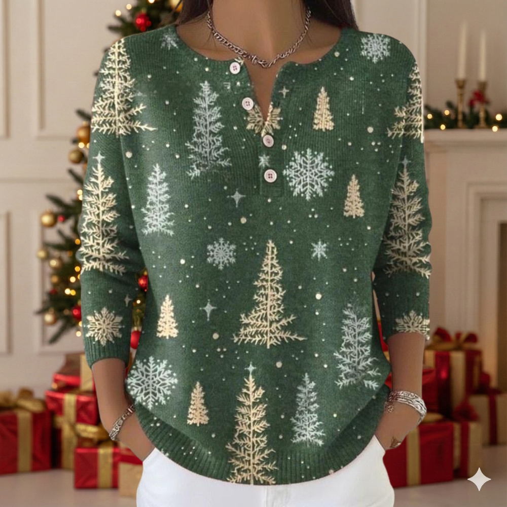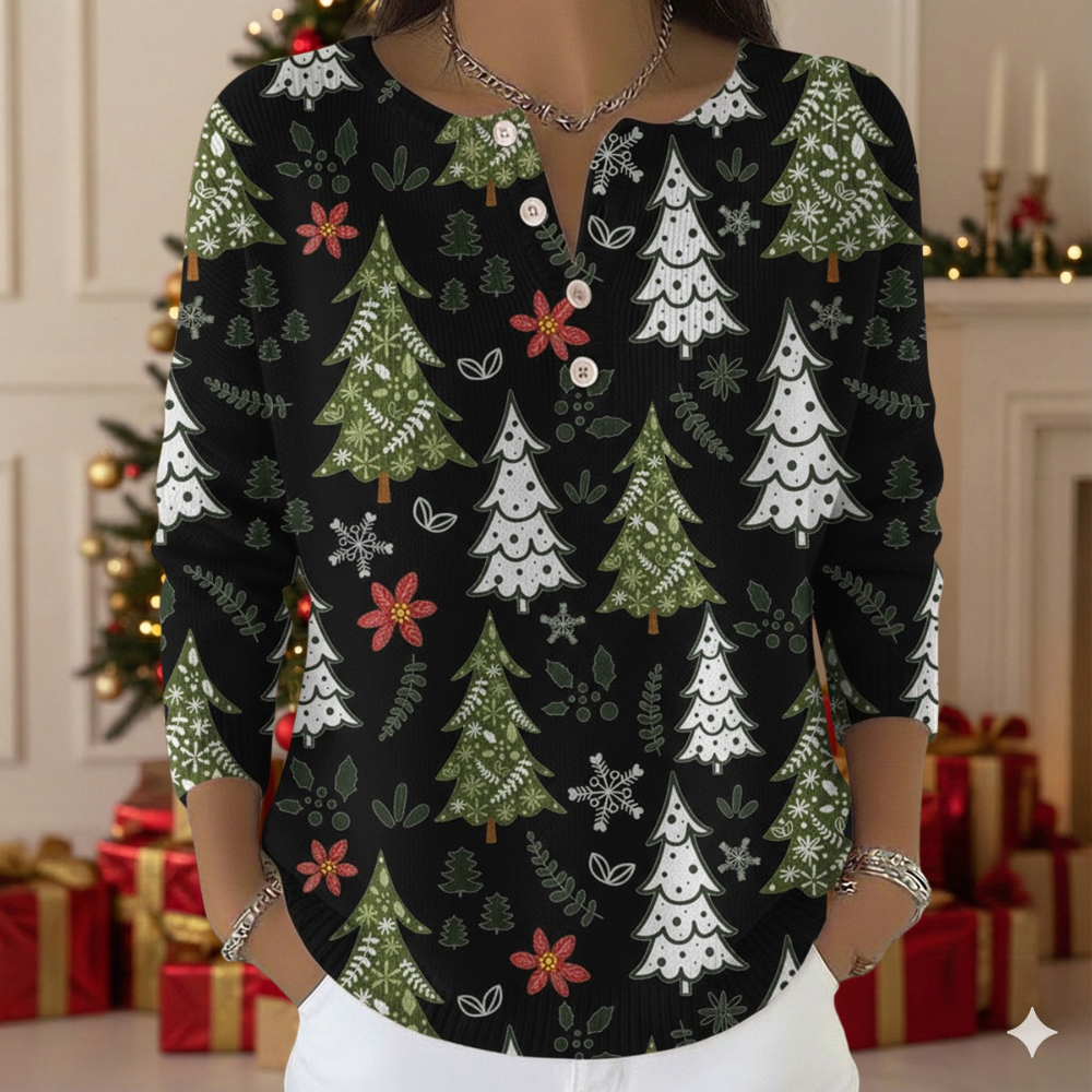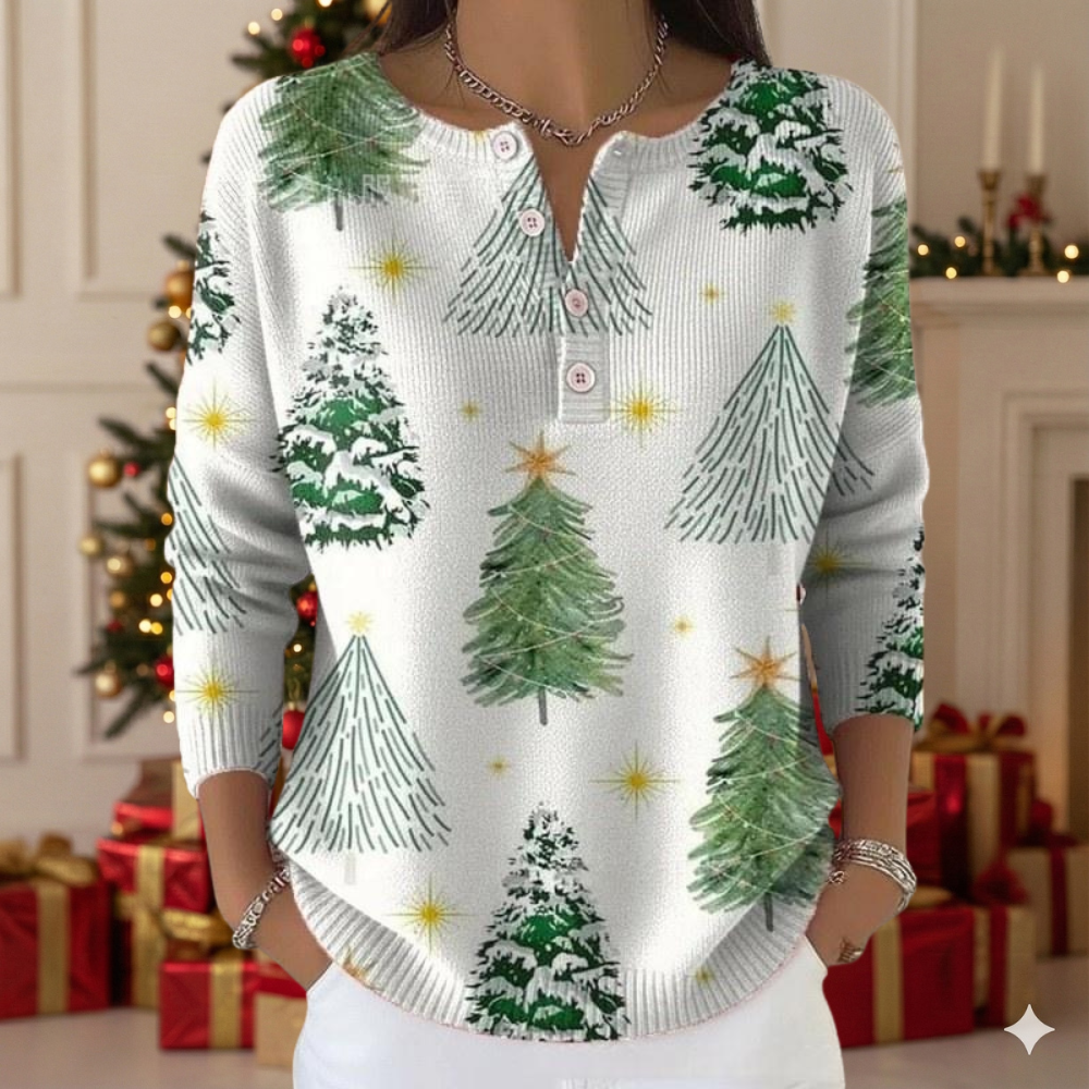 O modelo Noelia traz um padrão festivo elegante, com detalhes natalicios que dão vida ao look sem exageros. Um jersey confortável, suave e perfeito para usar durante toda a temporada.